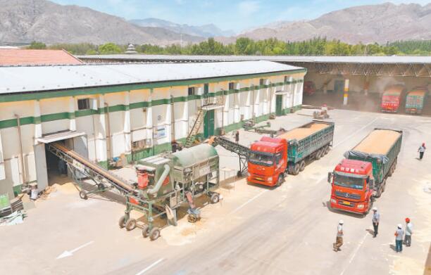 粮食经转运后开始入库。