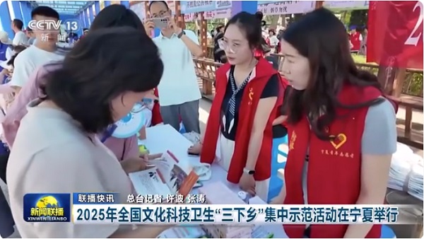 7月23日,由中央宣传部和宁夏回族自治区党委、政府联合主办的2025年全国文化科技卫生“三下乡”集中示范活动在宁夏青铜峡市举行。集中示范活动当天,来自宣传、文化、科技、卫生、教育、农业、司法等方面的专家和志愿者,在青铜峡市峡口镇综合文化站广场,为当地农民群众提供了政策宣讲、文艺演出、科学普及、医疗义诊、农技推广、法律咨询等服务。他们还将走村入户,把文化产品、农业服务、法律知识等送到农民群众身边。(据7月23日新华网)