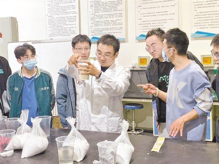 国家能源集团宁夏煤业有限责任公司引进的傅博博士(中)做煤矿巷道高性能加固注浆料实验。