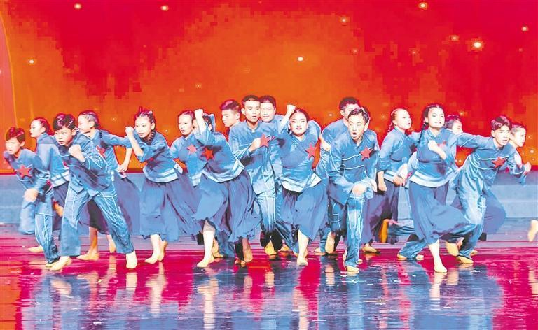 舞台上,孩子们如烈火跃动:握拳匍匐,再现先辈暗夜前行的坚毅;昂首托举,坚定信念永不言弃。他们动作利落,仿佛在无声的世界里,以肢体为笔,书写着嘹亮的青春宣言。指导老师曾莹说:“冲锋、抗争、跌倒……一遍遍练习中,孩子们用身体记住了历史的重量。”