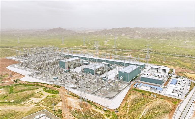8月20日,俯瞰±800千伏中宁换流站。当日,宁夏—湖南±800千伏特高压直流输电工程正式投产送电。工程起于宁夏中宁换流站,落点湖南衡阳换流站,途经宁夏、甘肃、陕西、重庆、湖北、湖南6个省区市,输电距离1616公里。每年可向湖南输送电量超360亿千瓦时,减排二氧化碳1600万吨,其中新能源电量占比超50%,对服务国家能源发展战略、优化区域资源配置、推动绿色低碳转型具有重要意义。