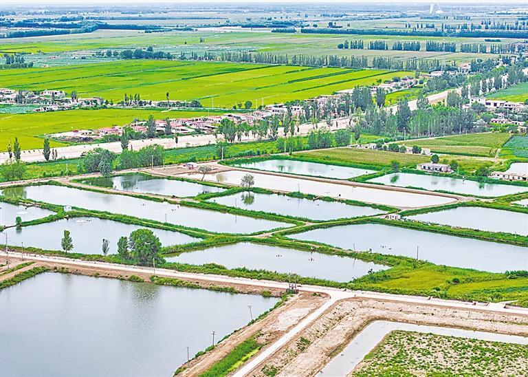 一片片池塘与农田村落相连,形成塞上江南的魅力图景。