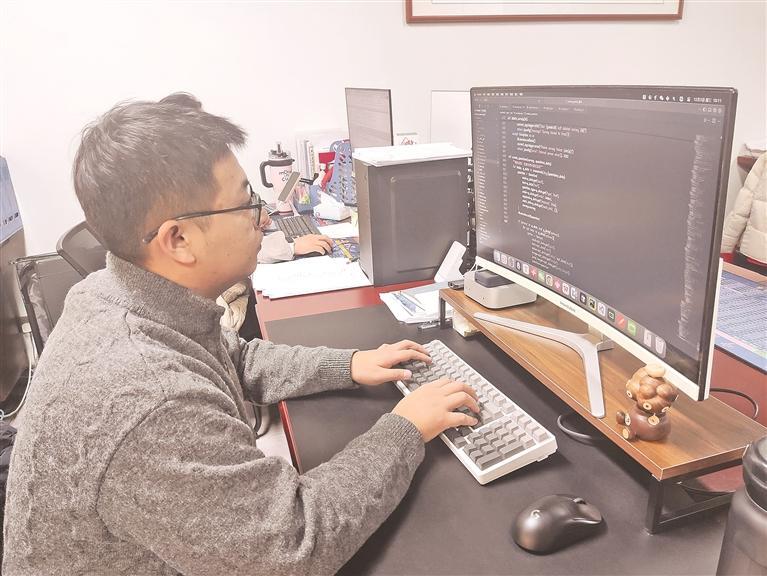 宁夏艾依斯数据统计调研有限公司人工智能训练师伏建雄在分析数据。 记者 陈思 摄