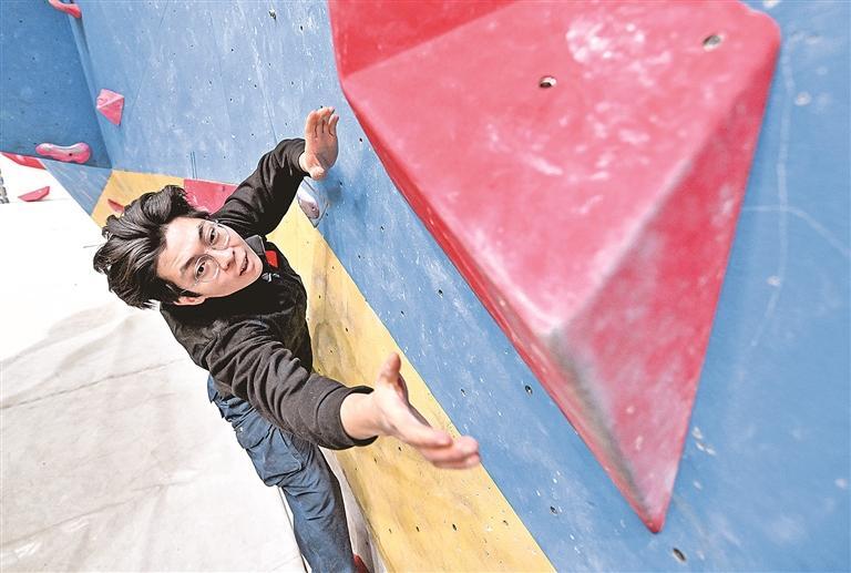 岩友相聚在宁夏亲水体育中心攀岩馆,锻炼力量与耐力。