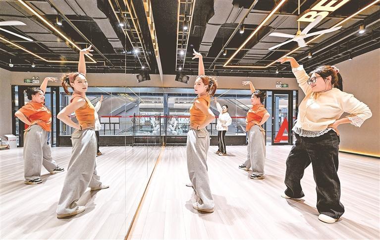 市民在银川阅彩城跳动全城舞蹈培训机构习舞。