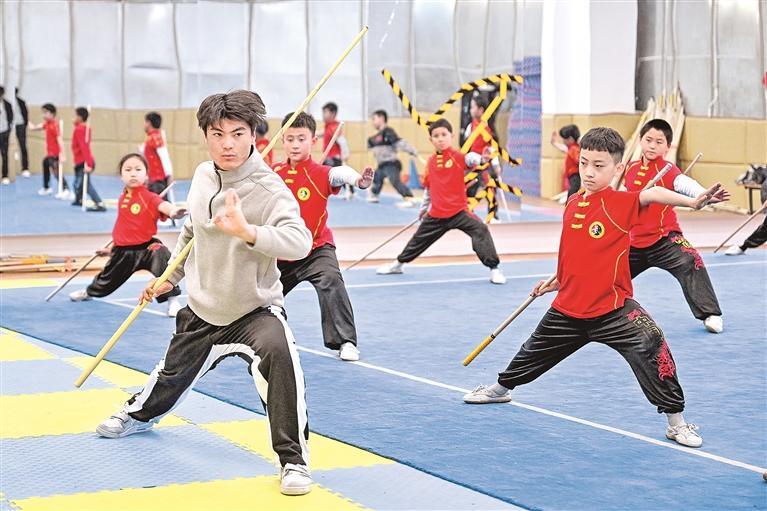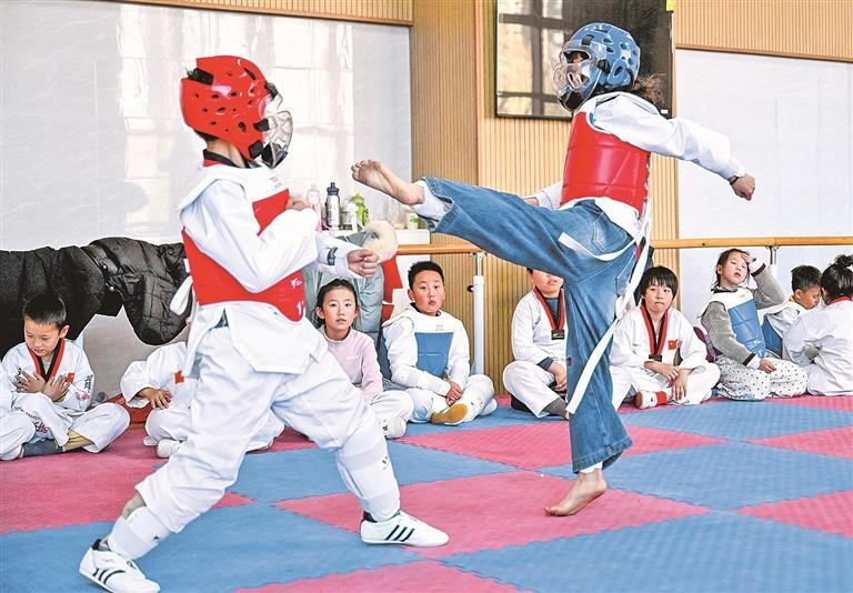 “腿法快准狠,不要犹豫。”银川市青少年宫金凤宫,跆拳道老师指导学生训练。隔壁教室,武术、轮滑等少儿课程和普拉提、尊巴等青年夜校课程同步进行。时值寒冬,人们用运动抗寒,在趣味学习中解锁新技能。