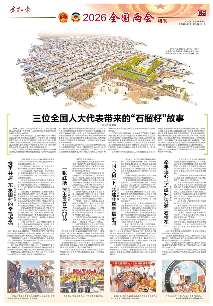 三位代表建议,进一步深化青少年民族团结教育,搭建更多交往交流交融的平台,挖掘传承中华文化符号,让石榴籽精神代代相传。(记者 杨淑琼)