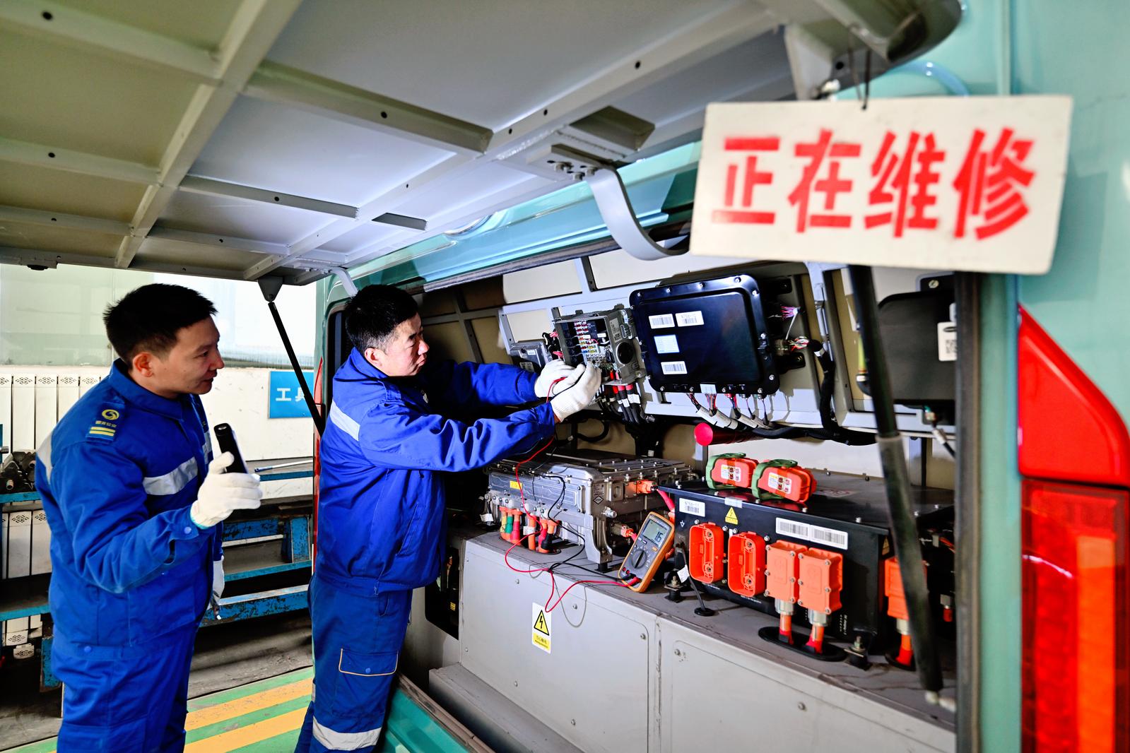 1月7日清晨,银川市公共交通有限公司旗下的宁夏车友家服务有限公司维修车间内,维修师傅给公交车开展全面“体检”,让市民出行坐上“安全车”“暖心车”,为城市公共交通筑牢冬季安全屏障。 记者 马楠 马赛尔 摄