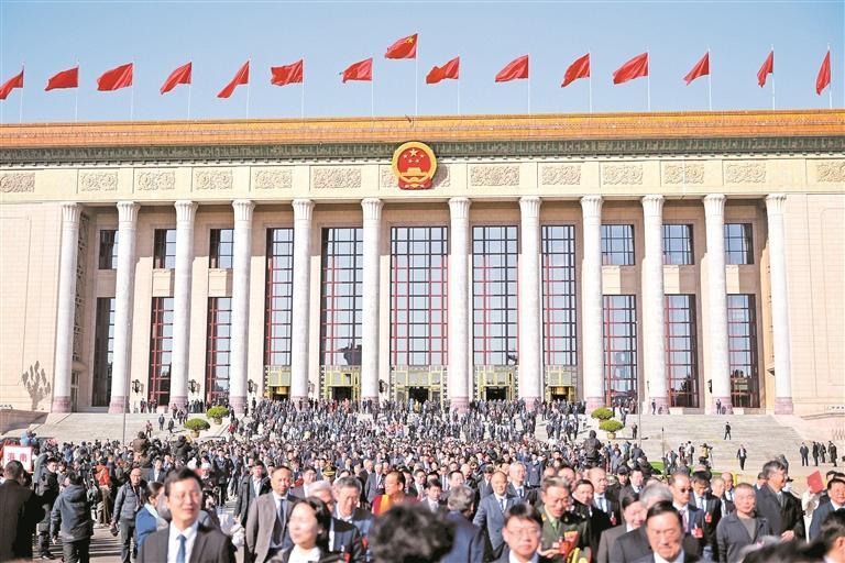3月11日,全国政协十四届四次会议闭幕,委员们满怀信心步出人民大会堂。