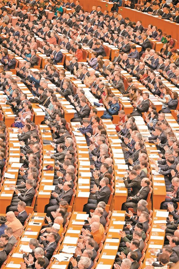 全国政协十四届四次会议第二次全体会议上,委员们为精彩的大会发言鼓掌。