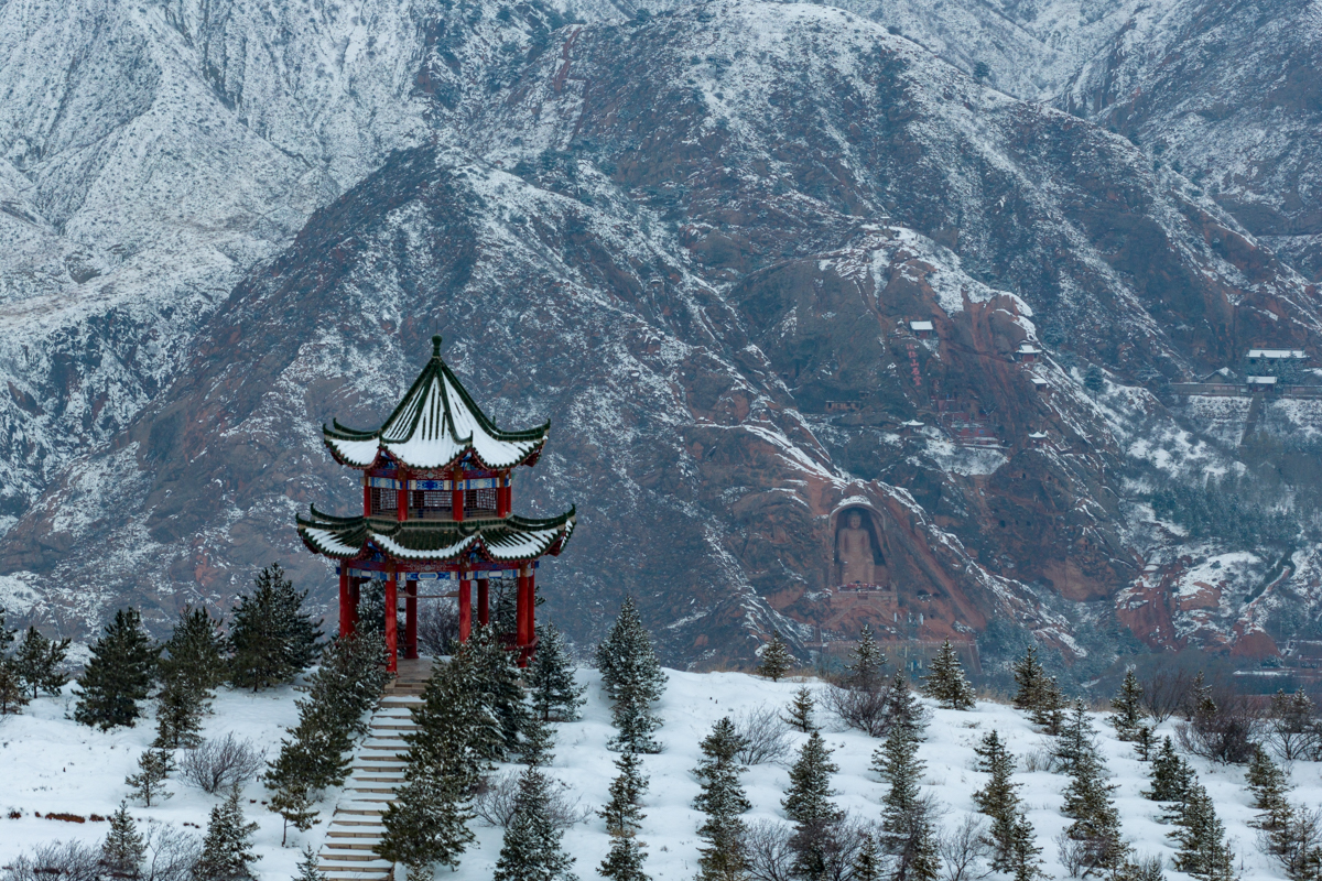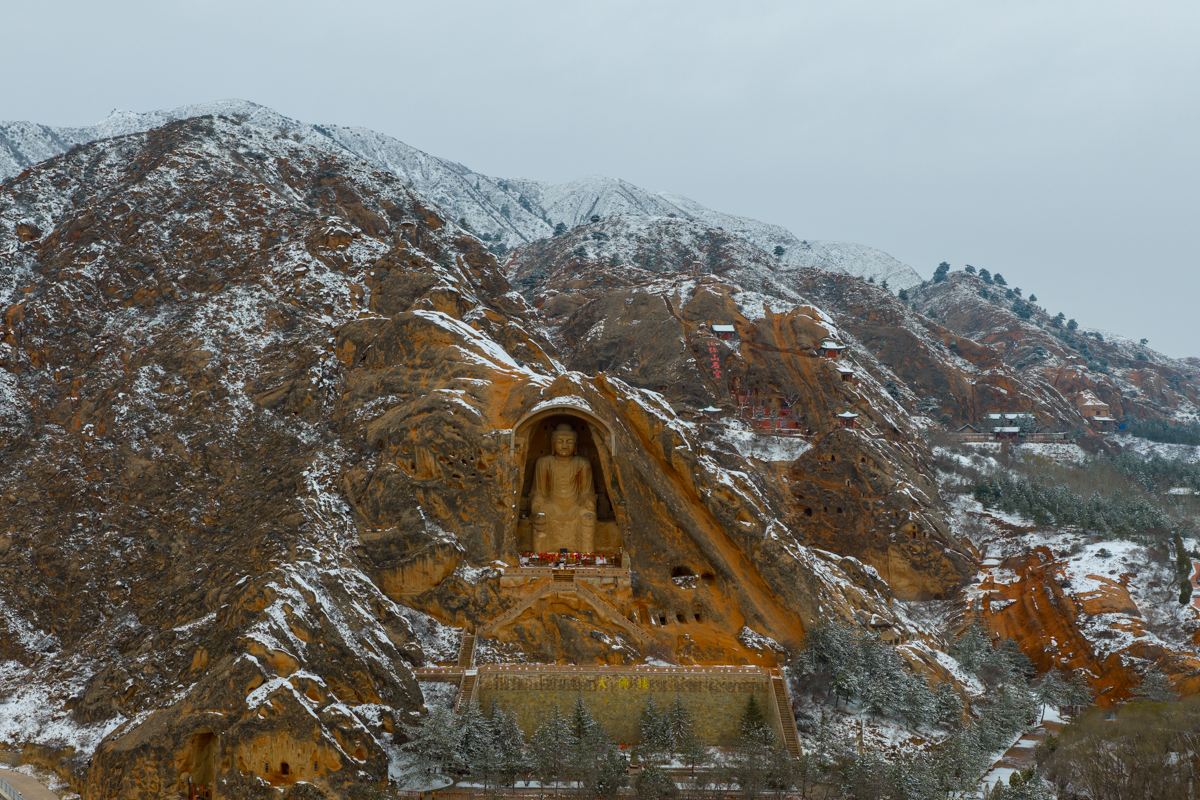 3月15日,雪后须弥,银装素裹,山峦如诗。褐红色的山体与皑皑白雪交织,壮阔又神秘。石窟中的佛像,在雪的映衬下更显神秘与庄严。宁夏新闻网记者 祁瀛涛 摄