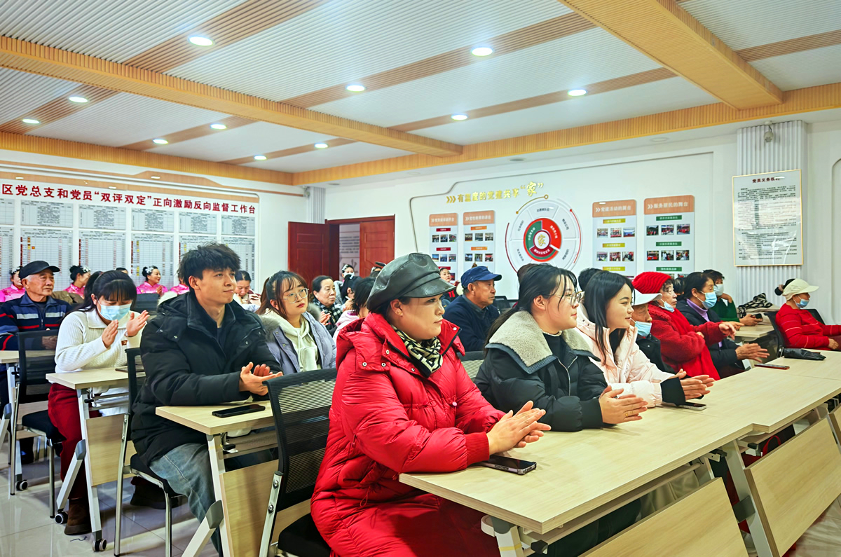 活动在共同聆听习近平主席二〇二六年新年贺词中拉开序幕。真挚温暖的话语直抵人心,引发全场深切共鸣。聆听贺词后,社区居民王先生心潮澎湃,主动分享切身感受:“社区环境越来越美,民生保障越来越全,咱们的日子真是越过越有盼头!”朴实的话语,道出了群众对党的政策的真挚认同。紧接着,宣讲员以居民的真实感悟为切入点,立足基层实际,用通俗生动的语言阐释党的二十届四中全会精神,将宏观政策与百姓关心的日常生活紧密联系起来,让理论变得可知可感、可亲可近。