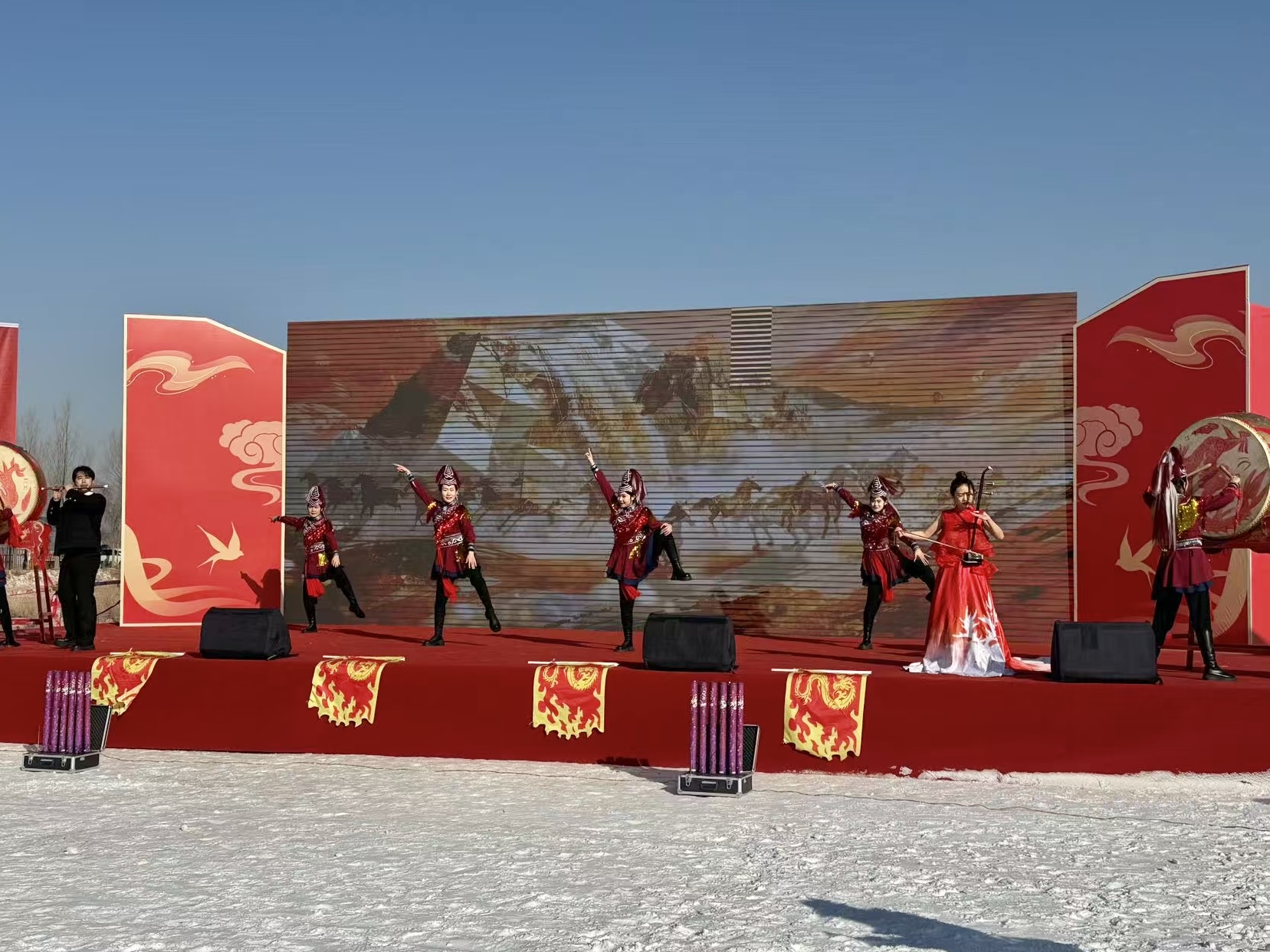 本次活动以“冰雪赋能乡村文旅”为核心,精心打造冰雪乐园、特色展区、冰雪美食汇、雪地社火等六大特色体验板块,生动展现“文旅+乡村”深度融合的丰硕成果。启动仪式现场,一曲激昂的歌舞《万马奔腾》点燃全场热情。活动同步发布银川市冬季文旅促消费系列活动内容及惠民政策,涵盖消费券发放、景区门票优惠、冬季特色旅游线路推荐等多重利好。宁夏稻渔空间乡村生态观光园也现场推介了园区冬季特色产品与优惠举措。其间,精彩迭出的歌舞表演,尽显银川乡土文化的独特魅力与蓬勃发展活力。
