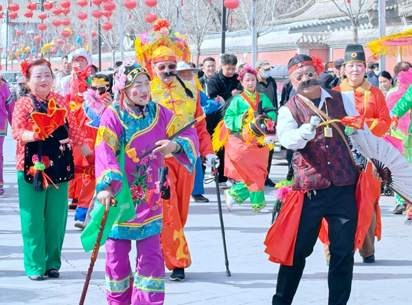 白天的民俗展演格外亮眼,舞龙、秧歌、高跷、旱船、花车等节目轮番上阵,热闹非凡。公园内的猜灯谜、投壶等传统互动项目人气高涨,五彩灯笼下悬挂着趣味谜面,大人小孩围在一起凝神思考、互相提示。“带着孩子一起来猜灯谜,既能开开心心地过节,又能近距离感受传统文化,很有意义。”市民王旭笑着说。