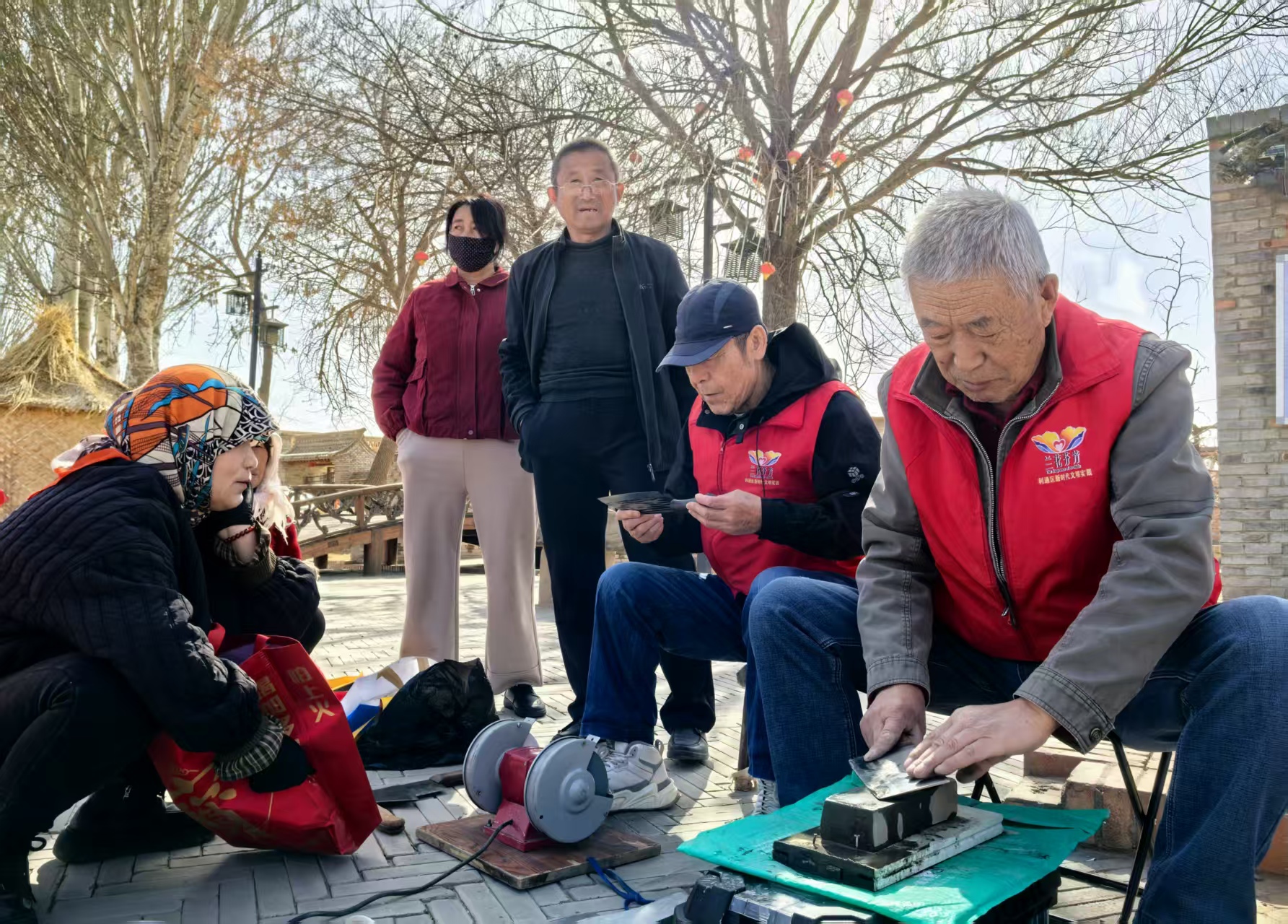 活动现场,74岁的李少成和70岁的包干其一边为群众免费磨刀,一边笑称两人是兄弟。有群众疑惑地问:真是俩兄弟?两人笑答是磨刀兄弟。李少成说,2007年从农机厂退休后,了解到“兰花芬芳”志愿服务组织为民服务的故事后,主动加入,这一干就是十几年。9年前,包干其从供电局退休后,也主动加入“兰花芬芳”志愿服务组织。2018年,两人在志愿服务过程中了解到居民磨刀需求难以满足,于是搭伴专门为群众提供义务磨刀服务,脚步遍布多个乡镇和社区,被市民亲切地称为“磨刀兄弟”。
