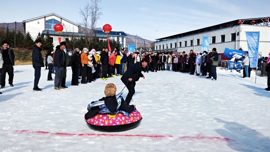 上午9时,滑雪场已成欢乐海洋。“雪圈同心接力”赛道上,两人组默契配合,雪圈在雪道划出流畅弧线;“雪地聚力拔河”赛场呐喊震天,队员们拼尽全力进行力量与技巧的较量;“雪瓶击倒挑战”中,飞驰的雪圈撞倒雪瓶,引发阵阵喝彩。个人项目区亮点纷呈,“雪地疾跳”选手挑战平衡极限,“冰车竞速”参赛者奋力比拼滑行距离。最吸睛的“雪球智投”环节,蒙眼选手旋转掷球,清脆的铜锣声与欢笑声交织。亲子区暖意融融,蒙眼孩童触摸辨认父母,浓浓亲情驱散料峭春寒。